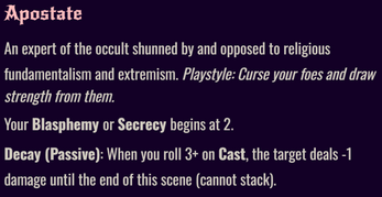 Heretics All is a game about rebels utilizing unholy powers to fight back against oppressive systems like religious extremism, colonialism, fascism, and patriarchy. This is a prototype - a proof of concept. Heretics All is an ambitious game with a little more crunch than most narrative games it’s inspired by, so this is just me getting all of my ideas onto a page and seeing if it clicks.